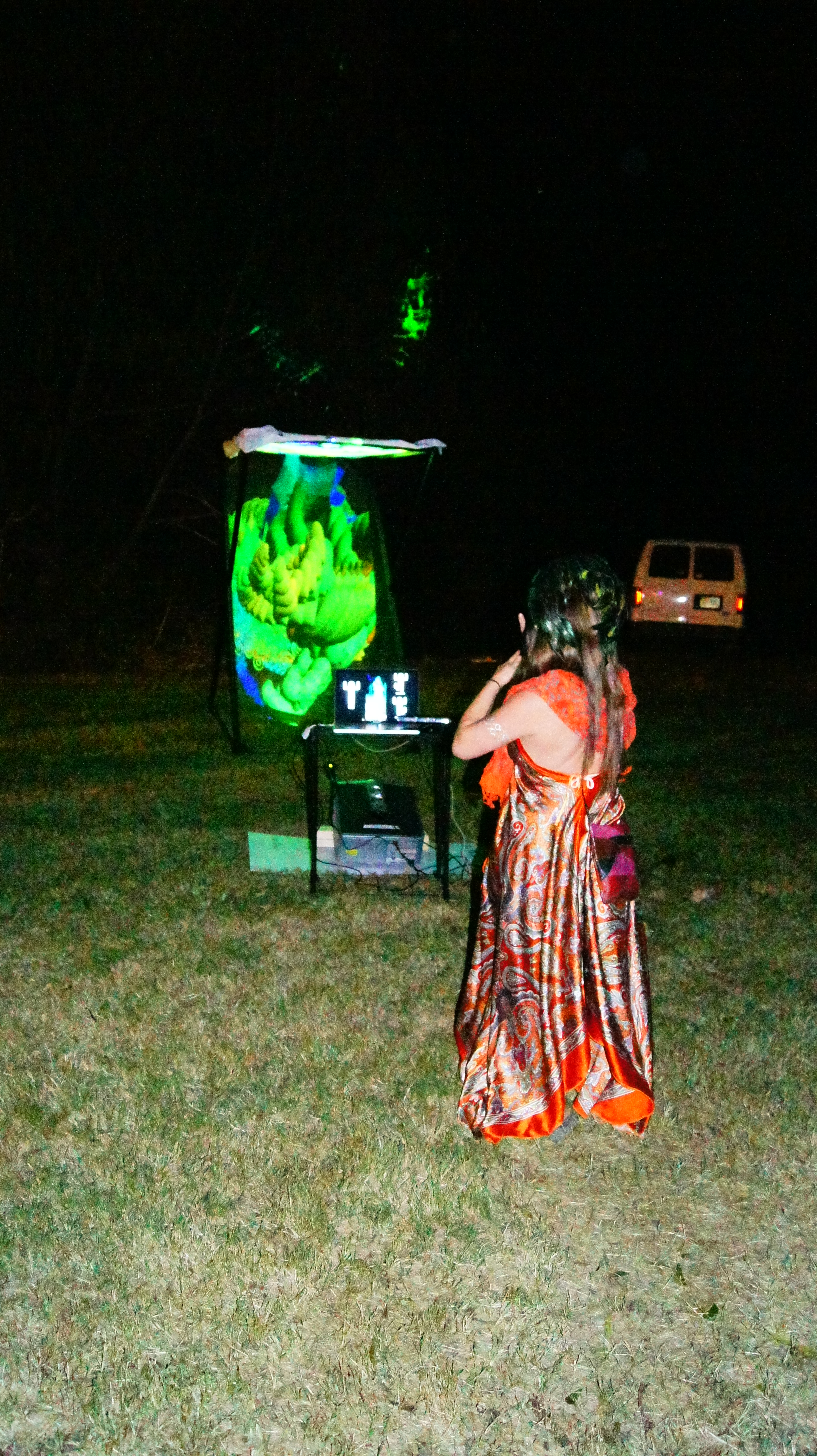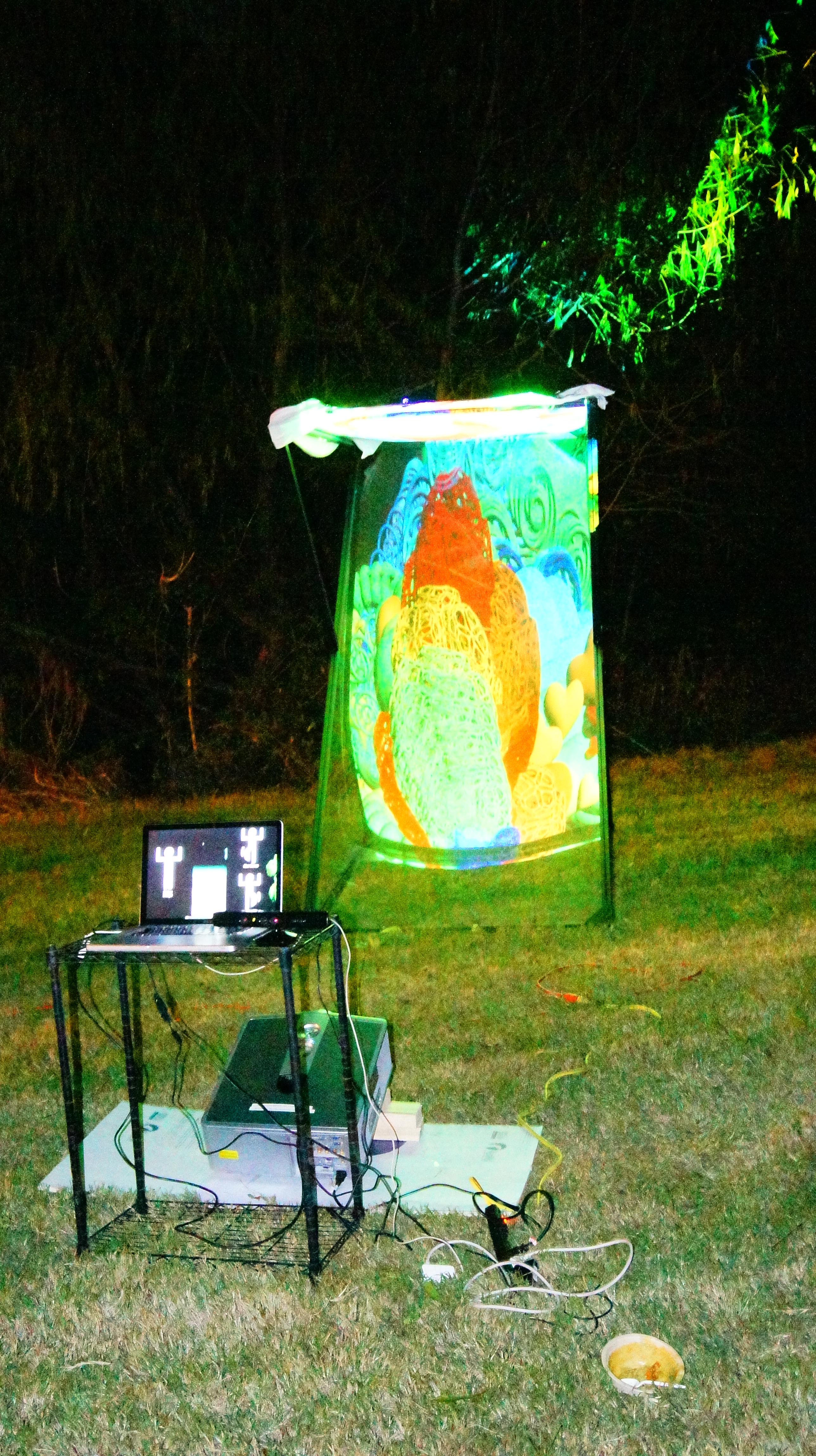 Using a Microsoft Kinect, Synapse, and Max MSP, position, scale, and rotate 3D objects to paint light trails.